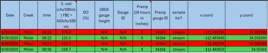 Miller Creek stream E. coli sampling Storm drain outfall E. coli sampling.