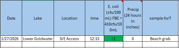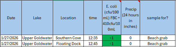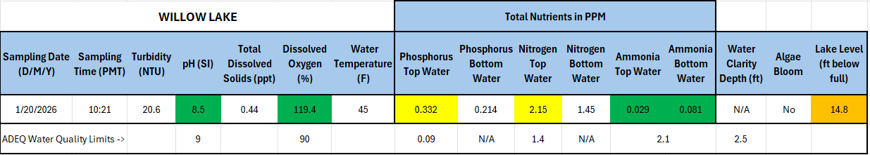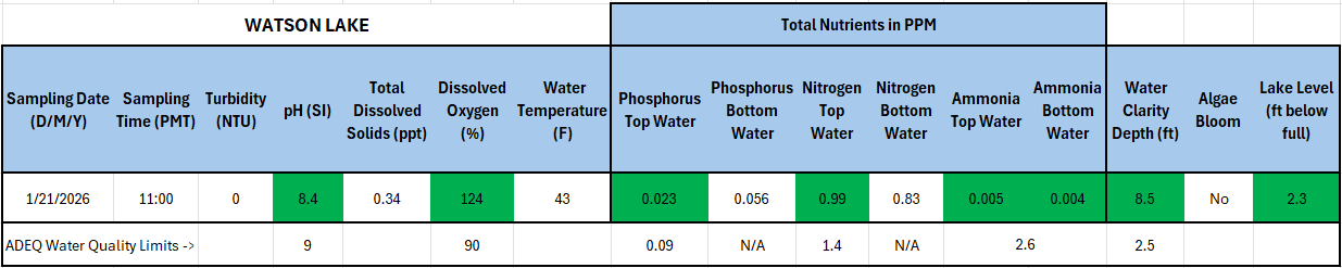 JANUARY 2026 WATER QUALITY SUMMARY: