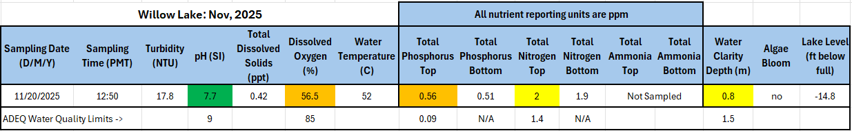 NOVEMBER 2025 WATER QUALITY SUMMARY: