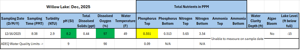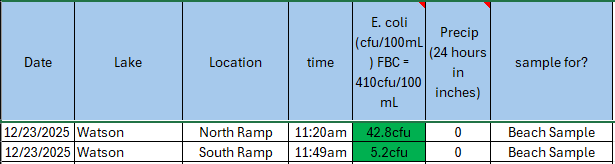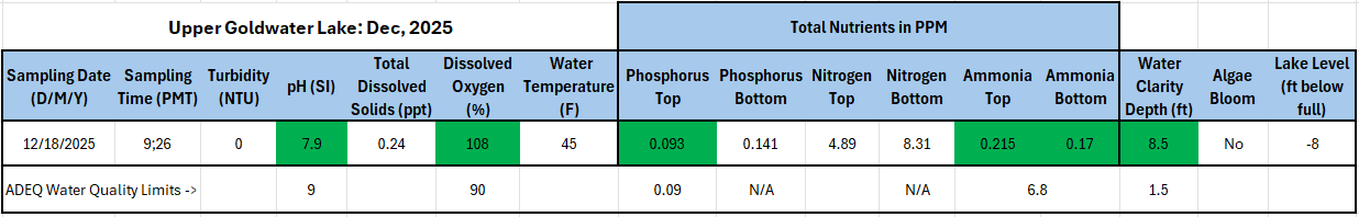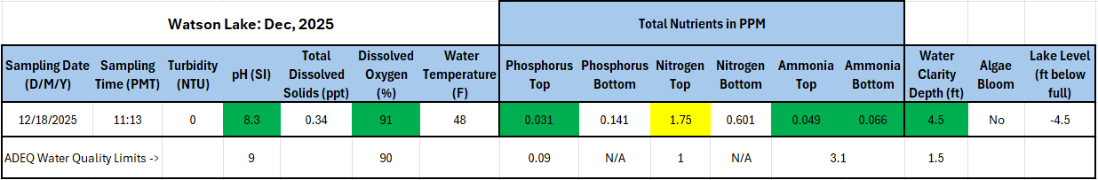 DECEMBER 2025 WATER QUALITY SUMMARY: