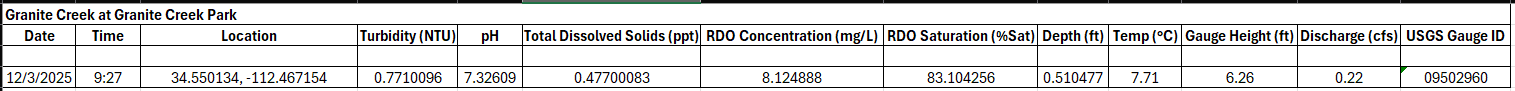 If you have lake or creek observations to report please send them to Stormwater@prescott-az.gov