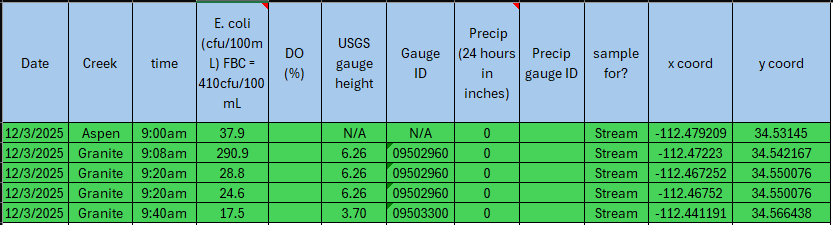 DECEMBER 2025 WATER QUALITY DATA SUMMARY:
